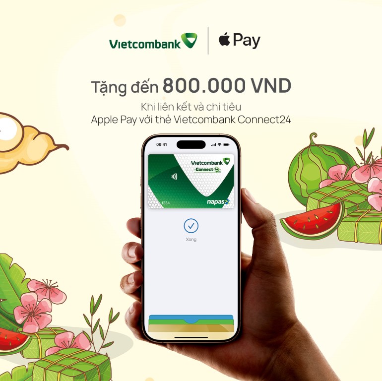 Tặng đến 800.000 VND với thẻ Vietcombank Connect24 và Apple Pay