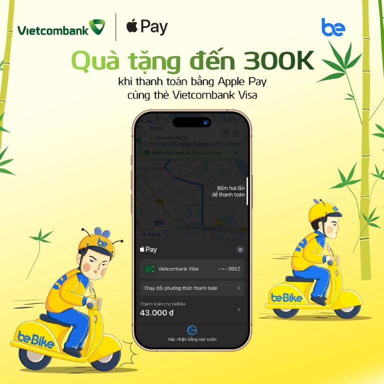 Nhận tới 300.000 VND khi thanh toán thẻ Vietcombank Visa qua Apple Pay tại BE
